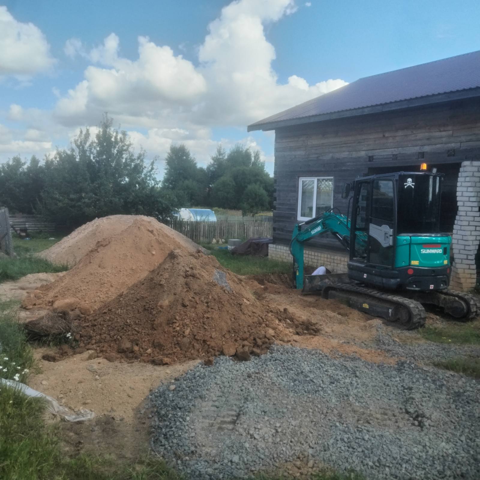 Выравнивание рельефа по отметкам, срезка/подсыпка и уплотнение. Формирование оснований под дом, дорожки и газон, вывоз лишнего грунта и финальная подготовка под благоустройство.